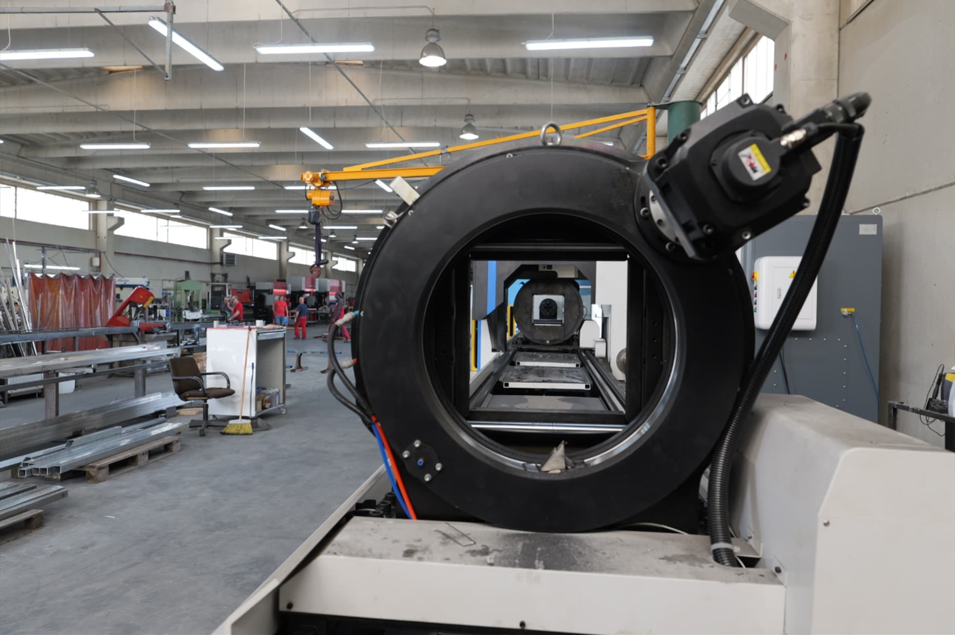 Sistema di taglio laser fibra su tubi e profilati cavi.