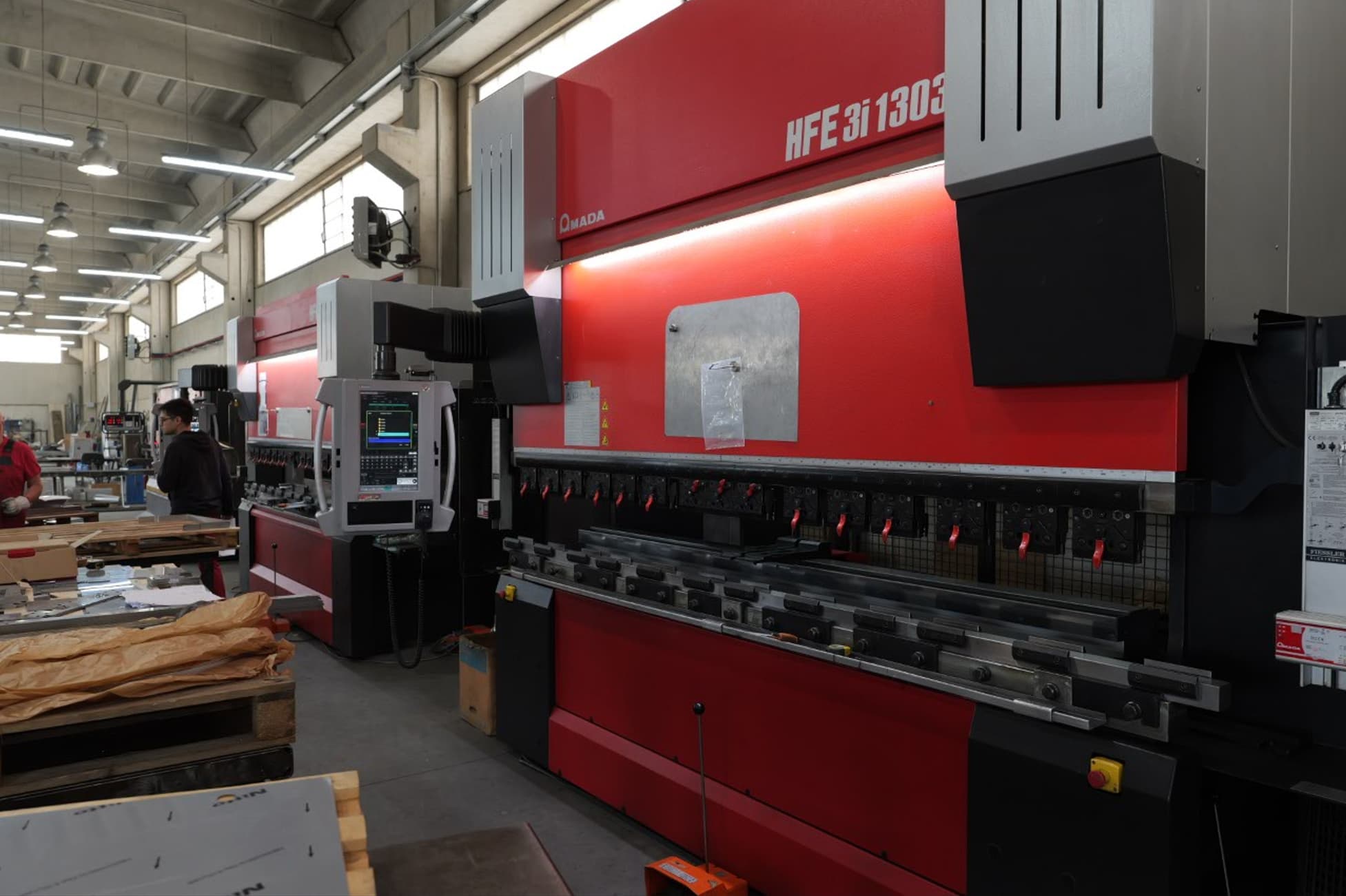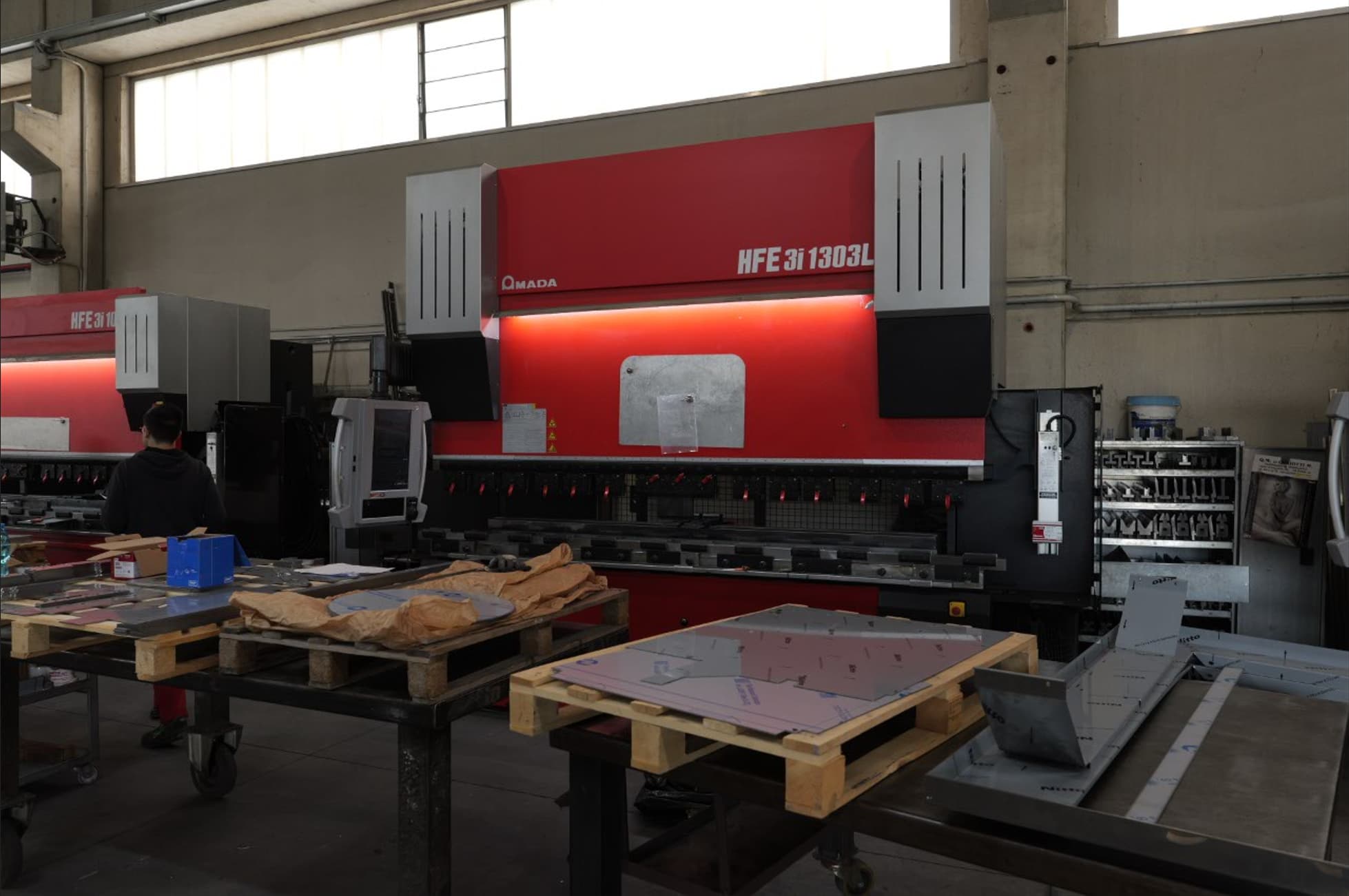 Il parco macchine è strutturato per garantire autonomia produttiva completa: dalle operazioni di taglio laser su lamiera e tubo, alla deformazione con presse CNC, fino alle finiture di saldatura e tornitura.