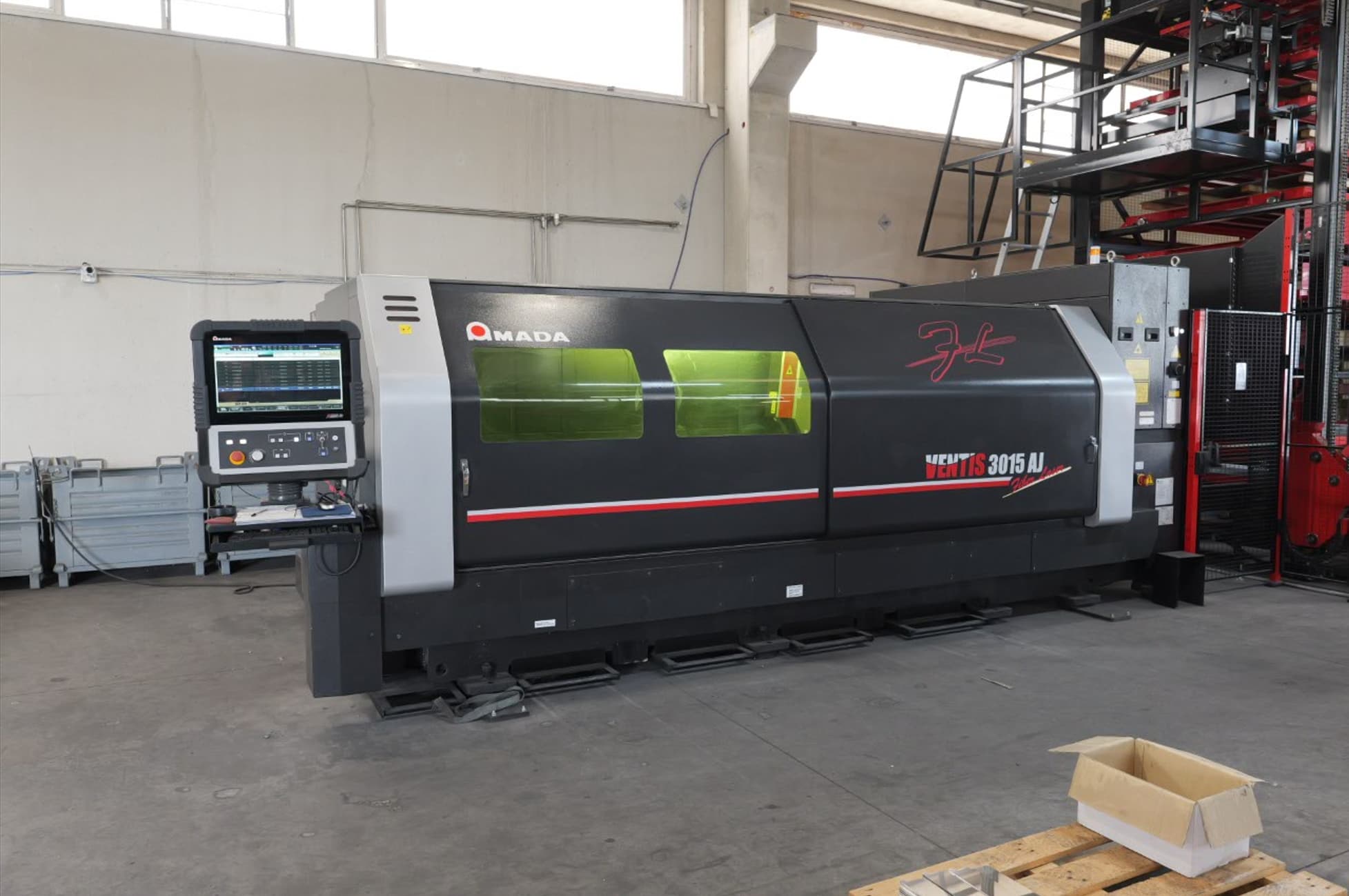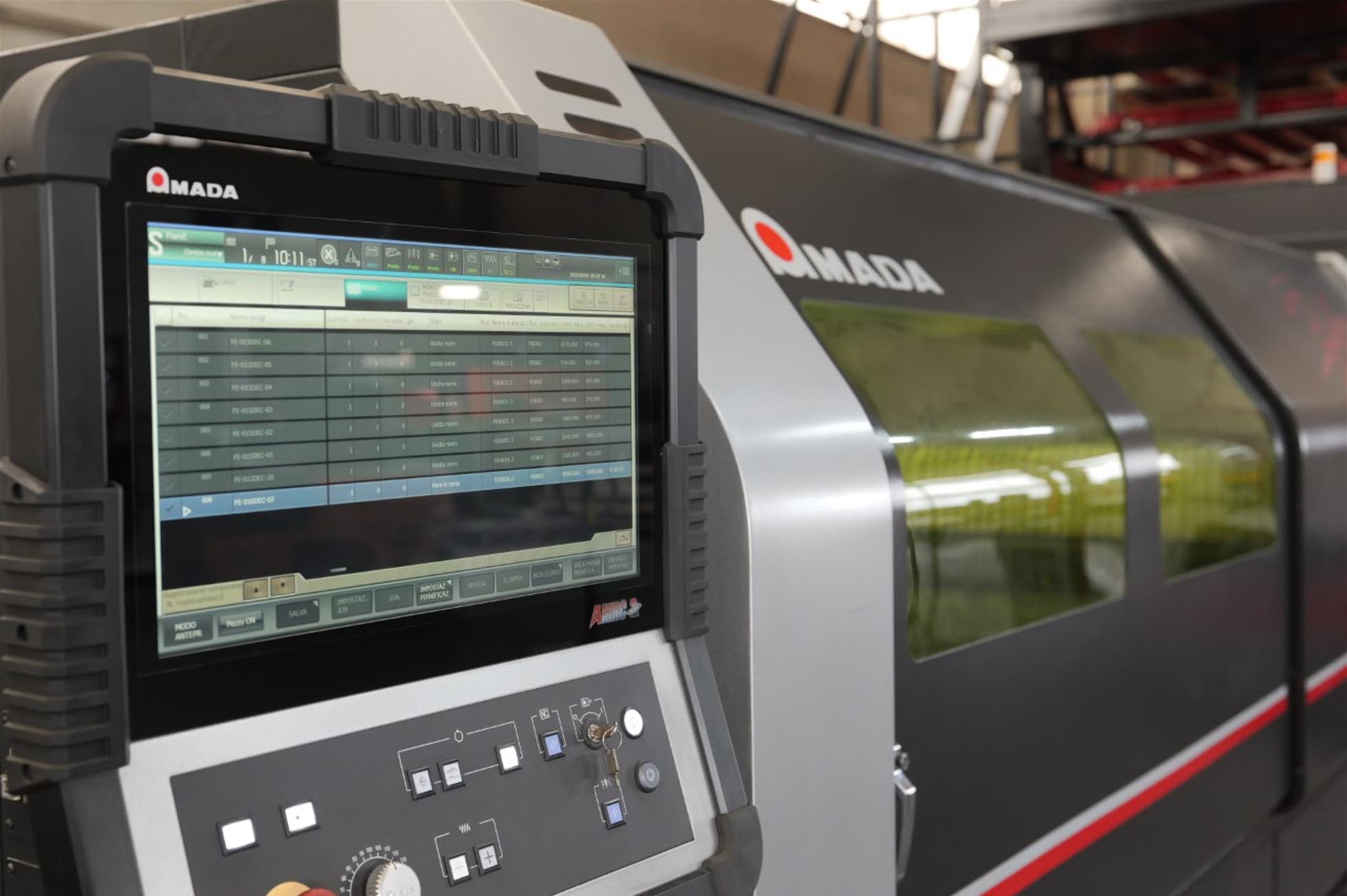 Sistema di taglio laser fibra AMADA VENTIS per lavorazioni ad alta precisione su lamiera.